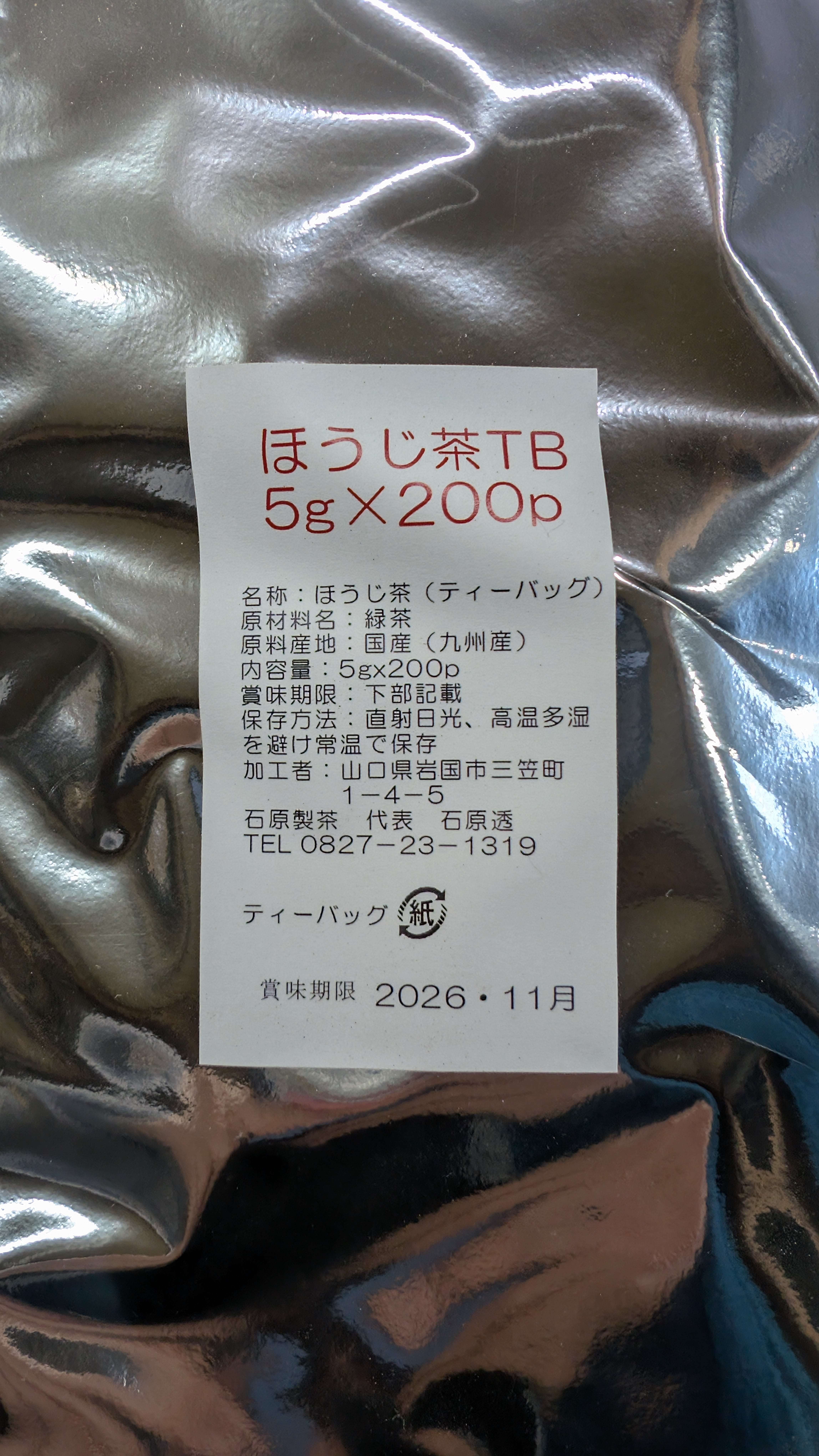 製造者:山口県岩国市三笠町1-4-5 石原製茶